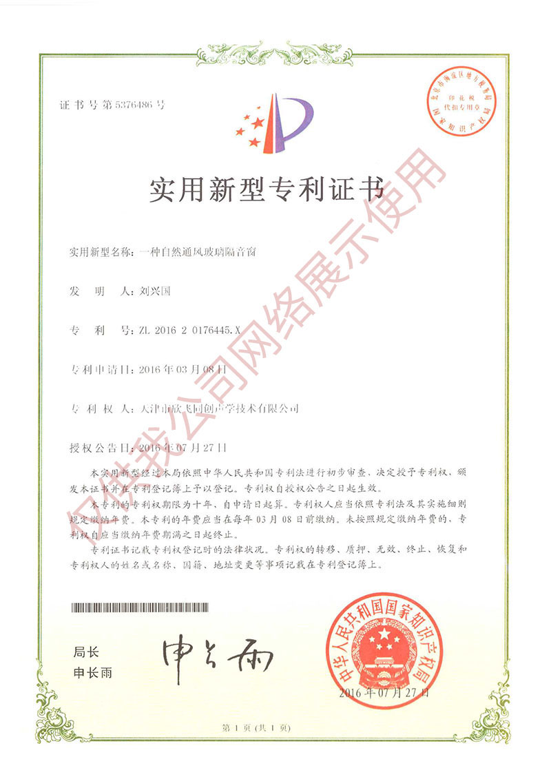 一种自然通风玻璃隔音窗